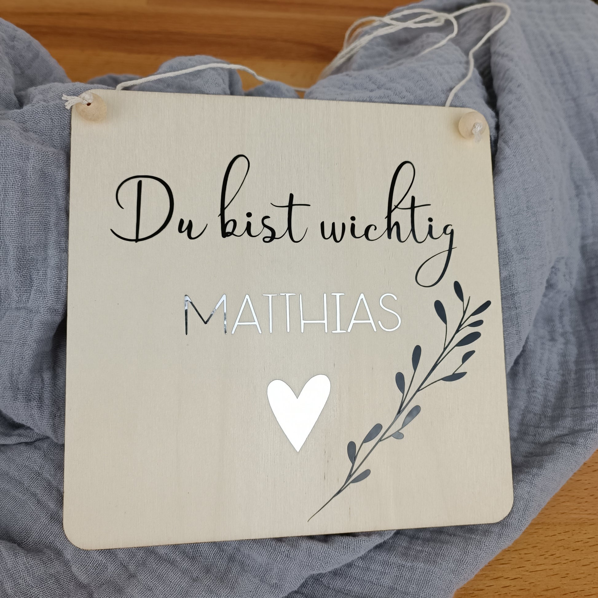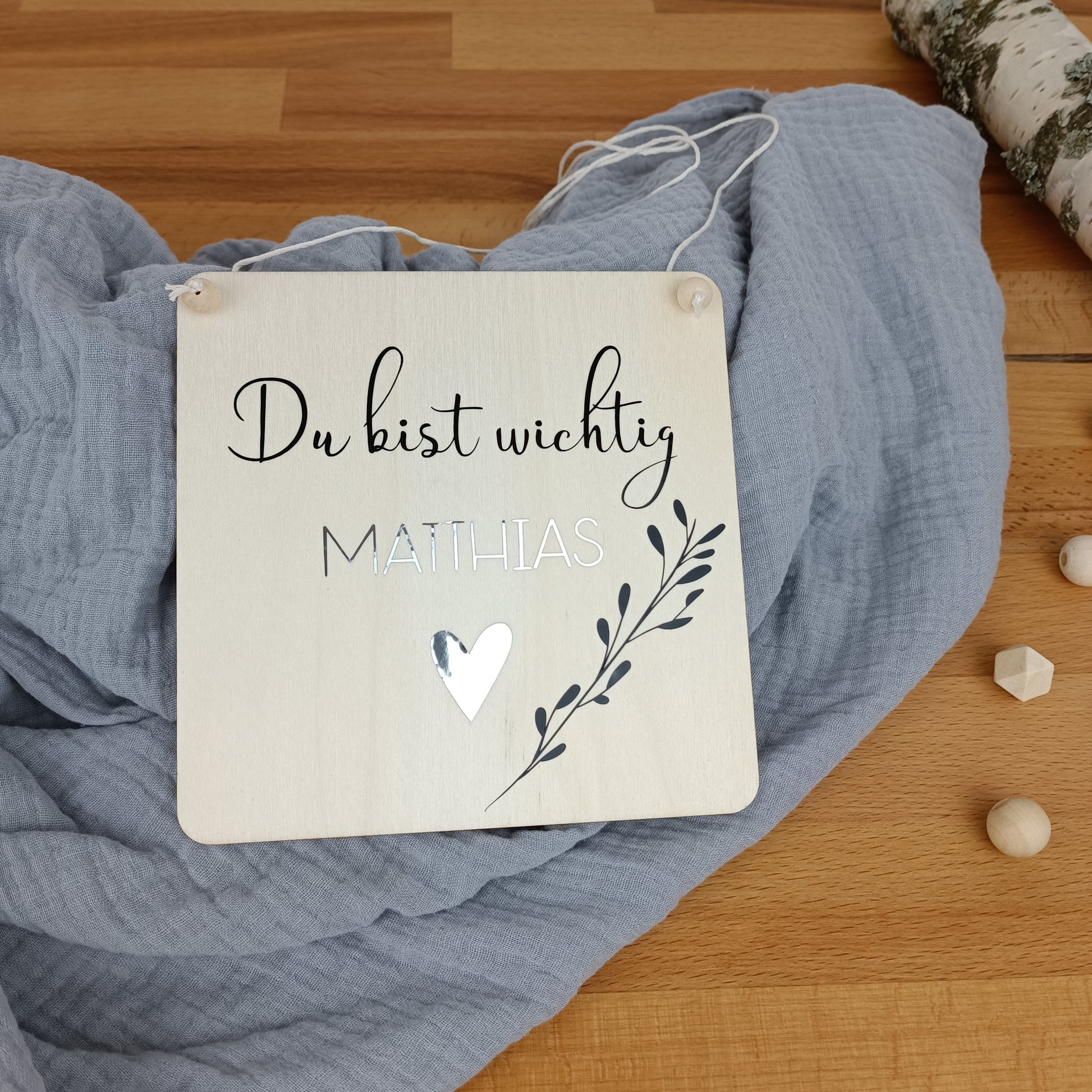 -> Holzschild mit Spruch und Namen